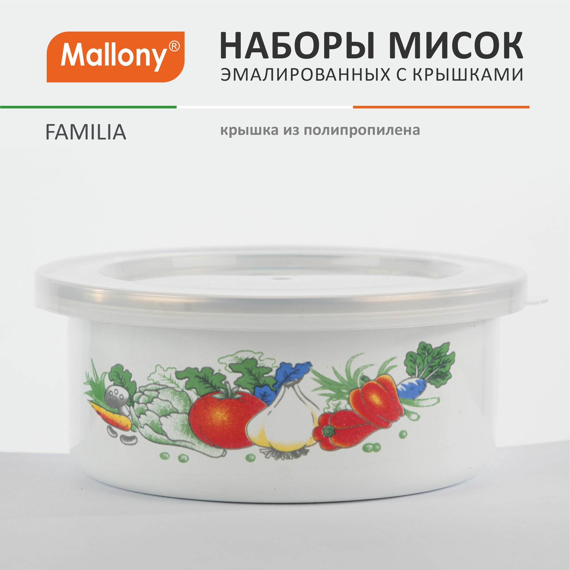 Набор мисок эмалированных с крышками Mallony Familia, 3 шт: 600, 850, 1250 мл