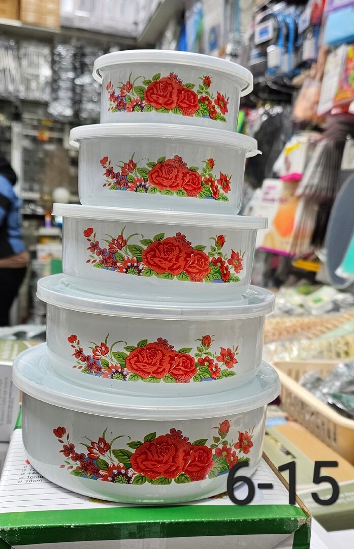 Набор мисок эмалированных с крышками Mallony Familia, 5 штук: 195, 340, 600, 850, 1250 мл интересное: