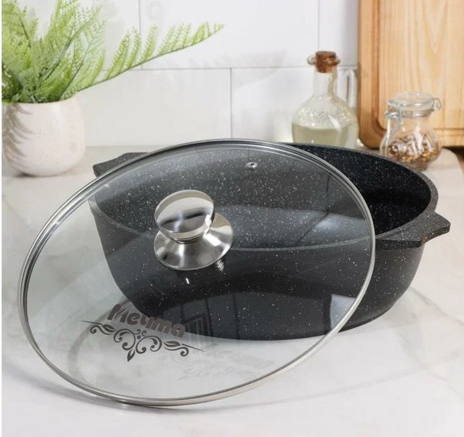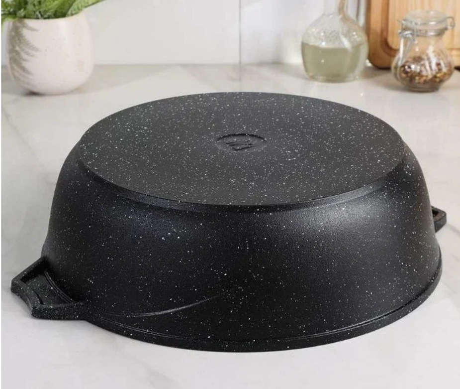 Жаровня "Мечта" 6л Гранит с антипригарным покрытием с крышкой, можно мыть в посудомоечной машине