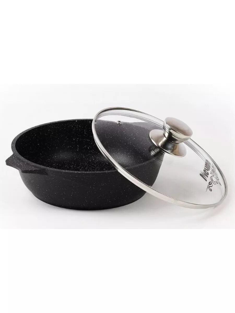 Жаровня 4 л Мечта Гранит 34802, черный гранит, крышка стекло