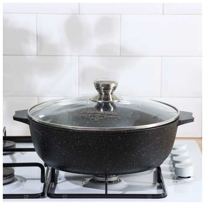 Купить Жаровня 5 л Мечта Гранит 35802, черный гранит, крышка стекло