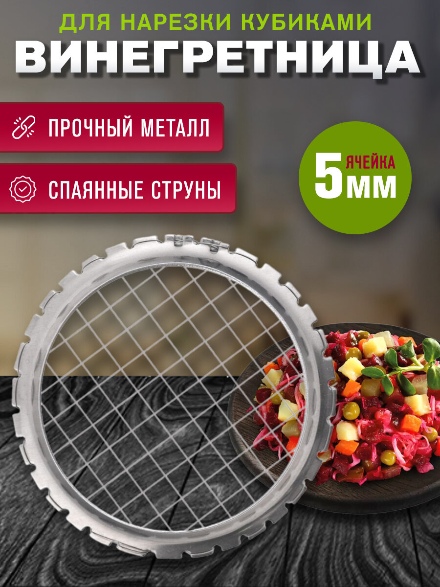 | Комплектация | Винегретница-овощерезка, ячейка 5мм-1штука |