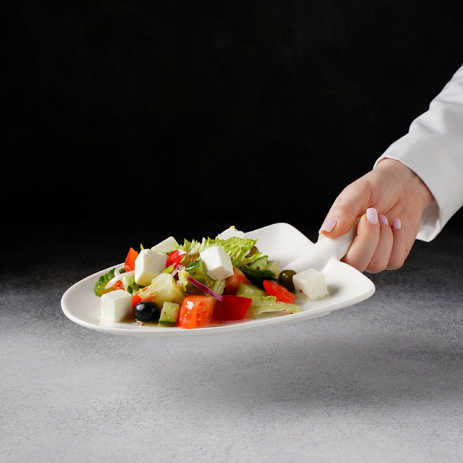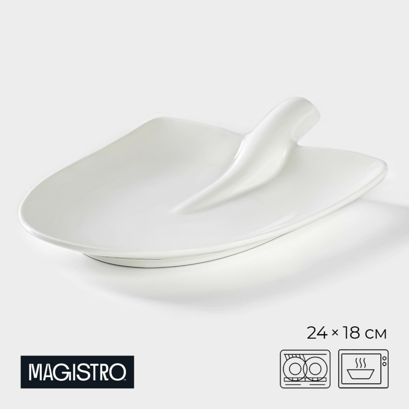 Блюдо фарфоровое для подачи и сервировки, тарелка глянцевая Magistro "Лопатка" 24x18x4,5 см интересное: