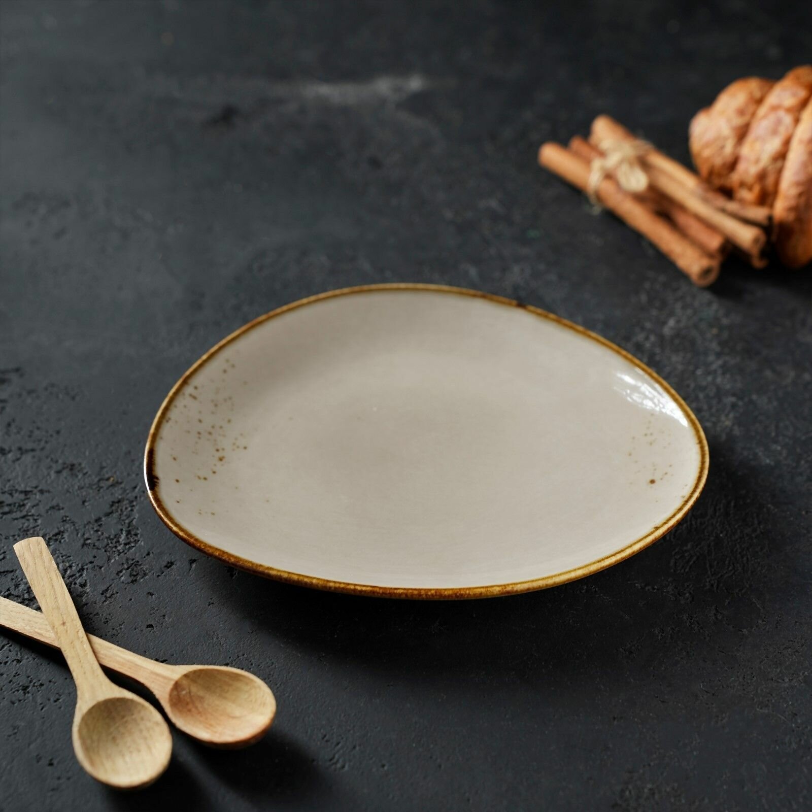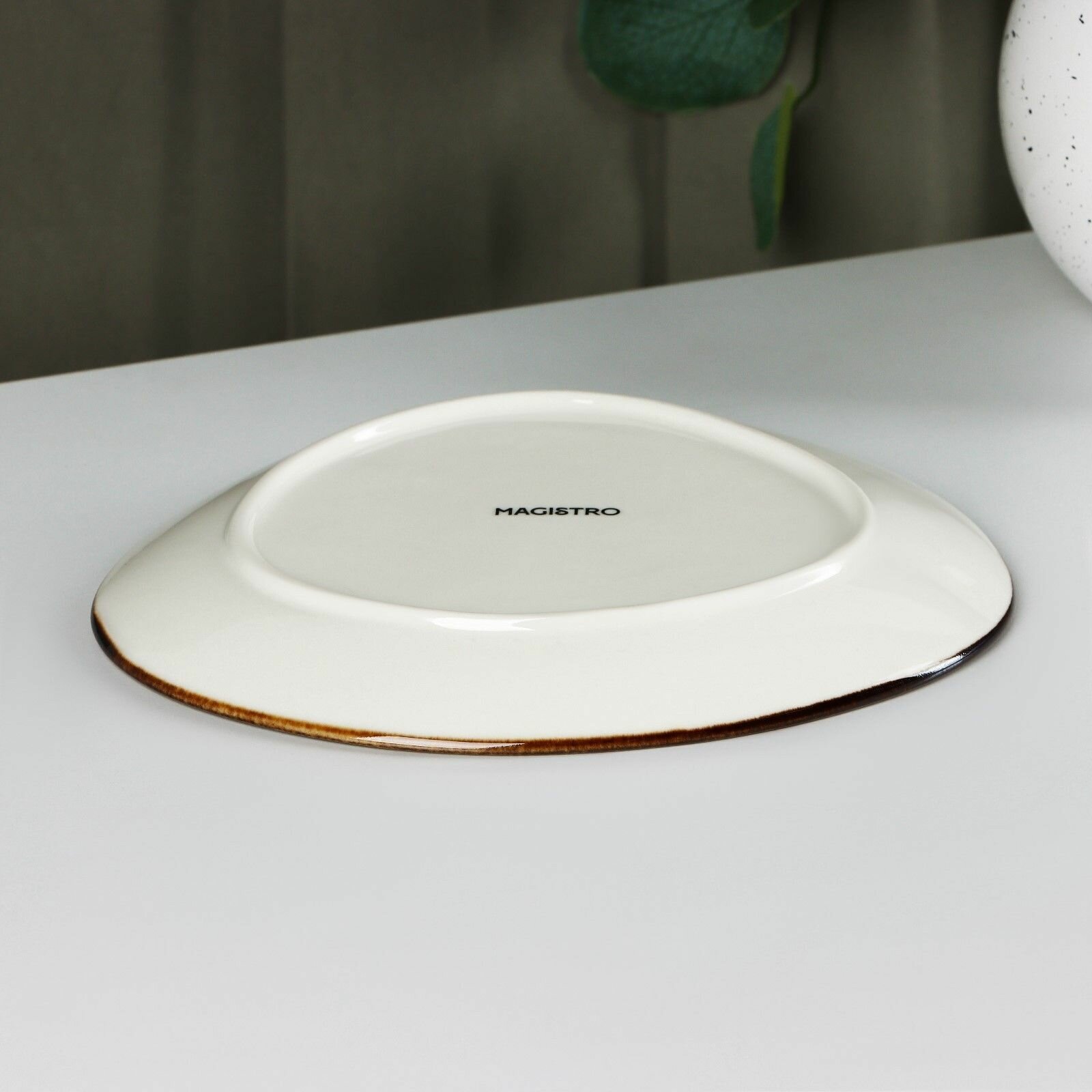 Купить Тарелка обеденная фарфоровая фигурной формы Magistro «Церера» 20х18 см, цвет коричневый