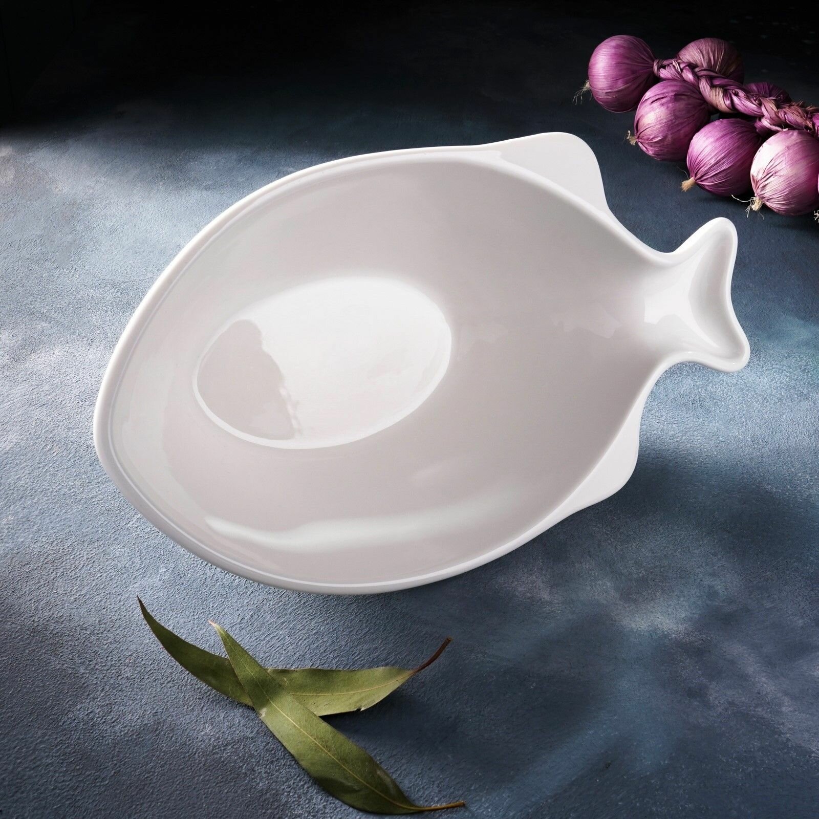 Салатник "Рыбка", 2 л, 31x17x10.5 см, фарфор, цвет белый
