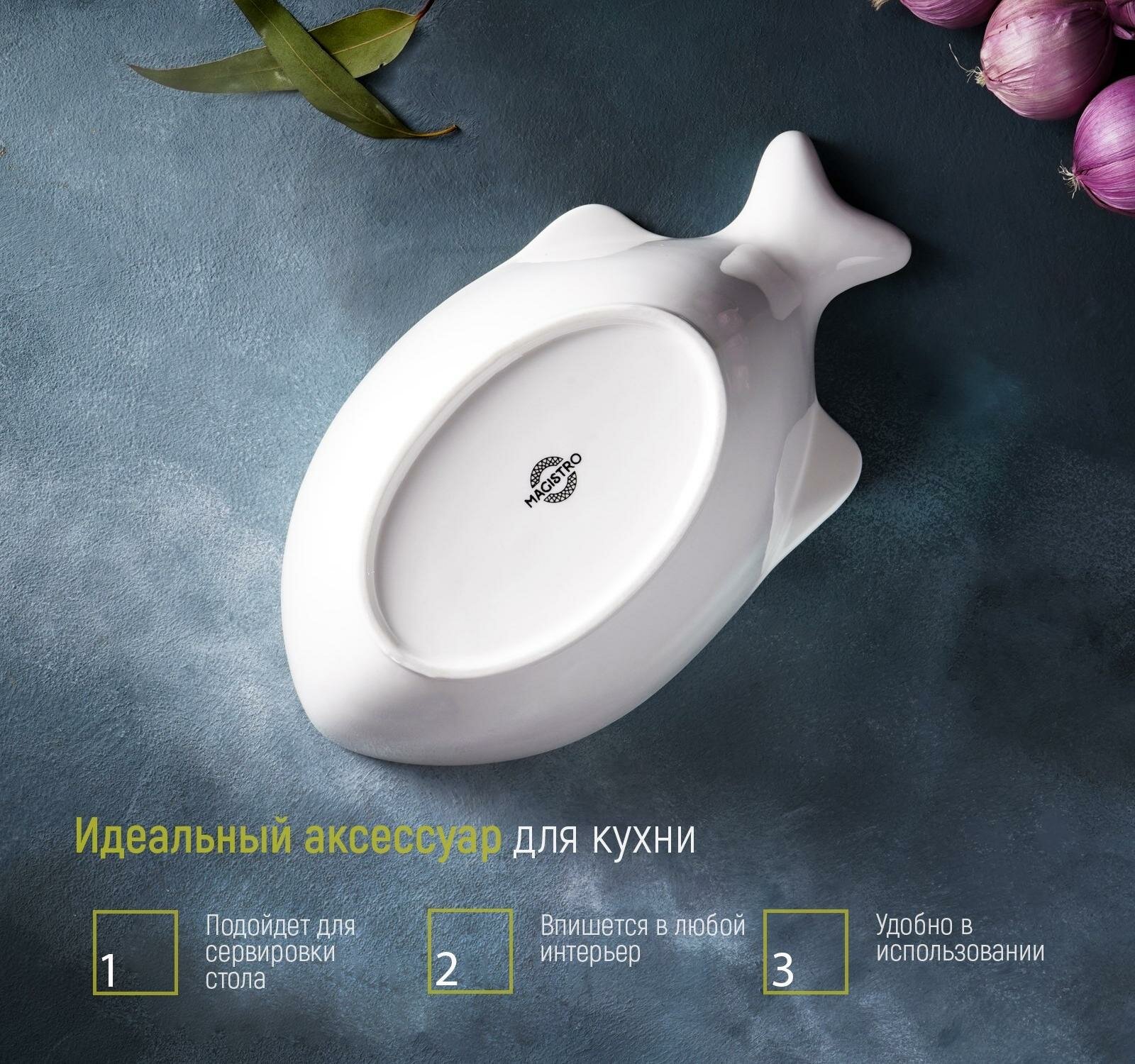 Купить Салатник Magistro «Рыбка», 2 л, 31×17×10,5 см, фарфор, цвет белый