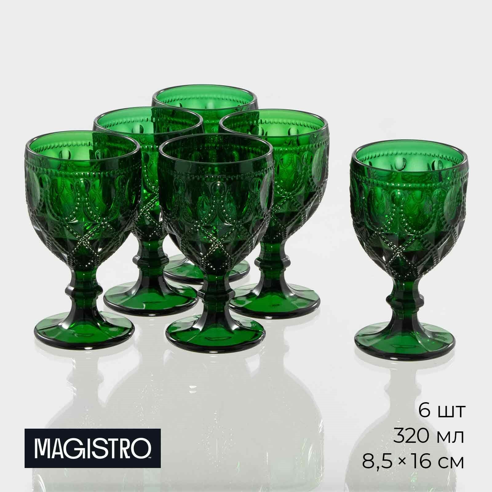 Купить Набор бокалов стеклянных для вина на 6 персон Magistro «Варьете», 320 мл, цвет зелёный