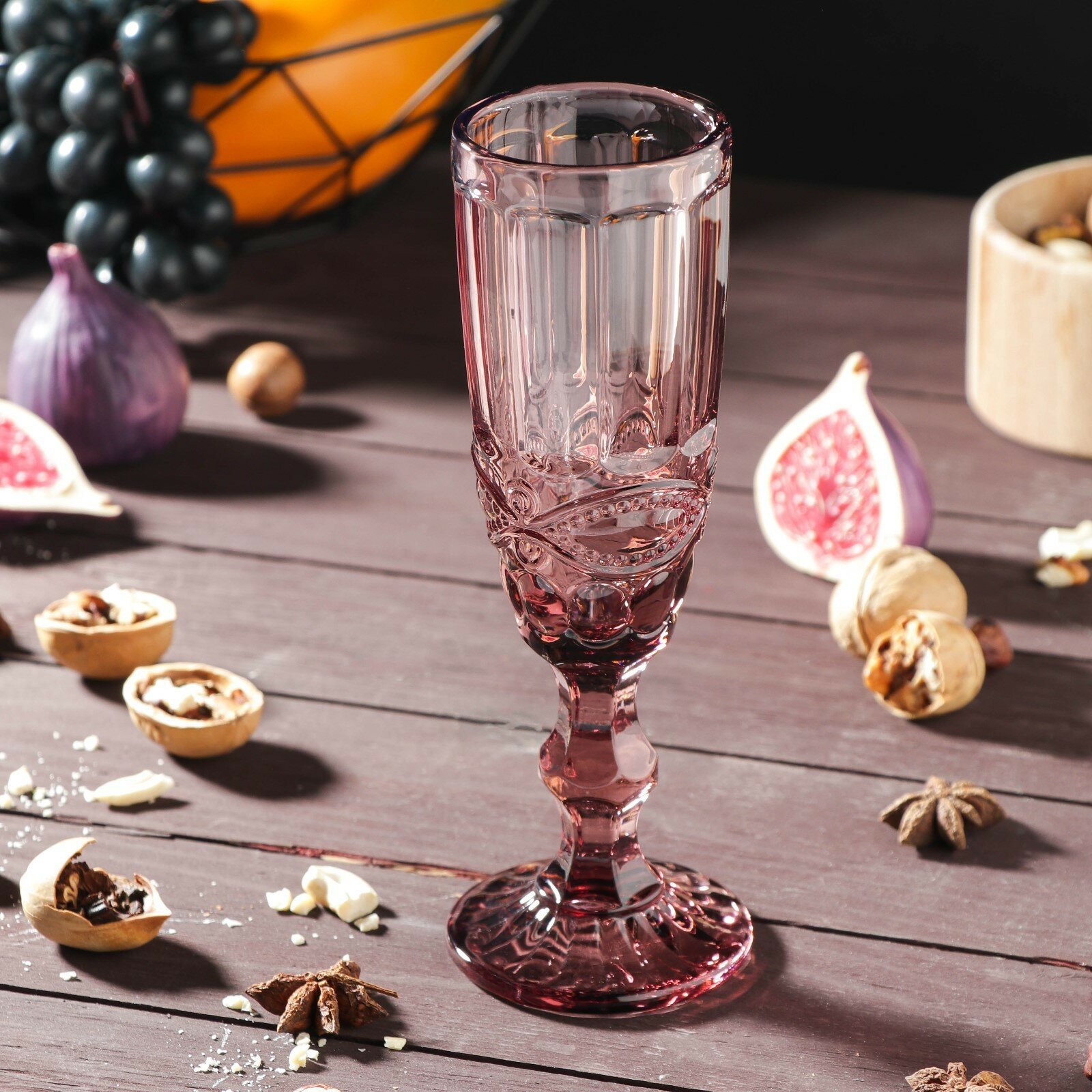 Бокал для шампанского Magistro «Грани», 150 мл, 8×14,5 см, стекло, сиреневый