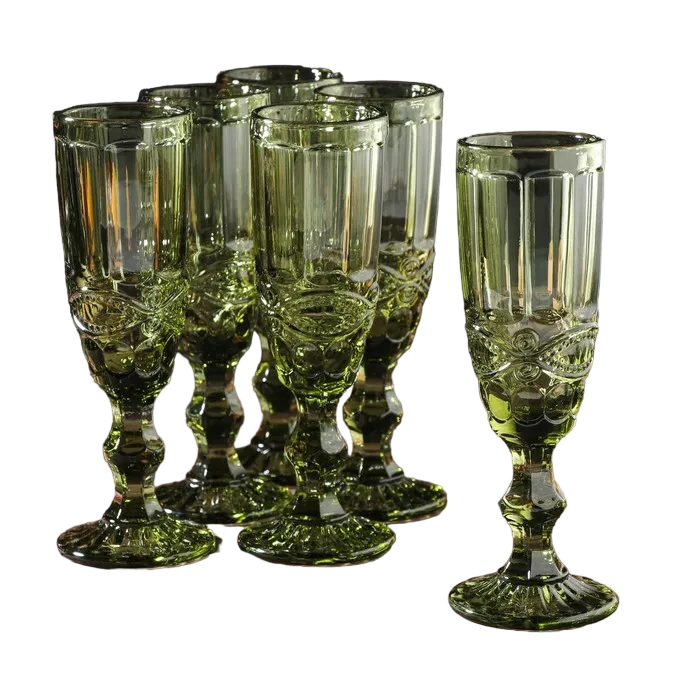 Бокалы для шампанского "Ла-Манш", 160 мл, 7x20 см, стекло, зелёные, набор 6 шт