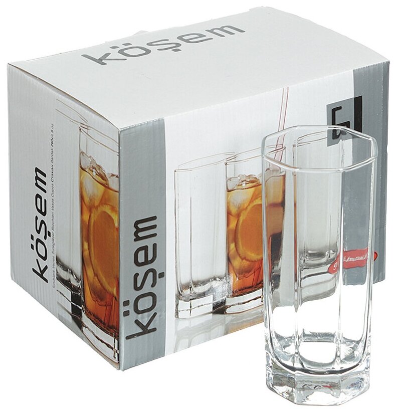 Набор высоких стеклянных стаканов Kosem, 260 мл, 6 шт