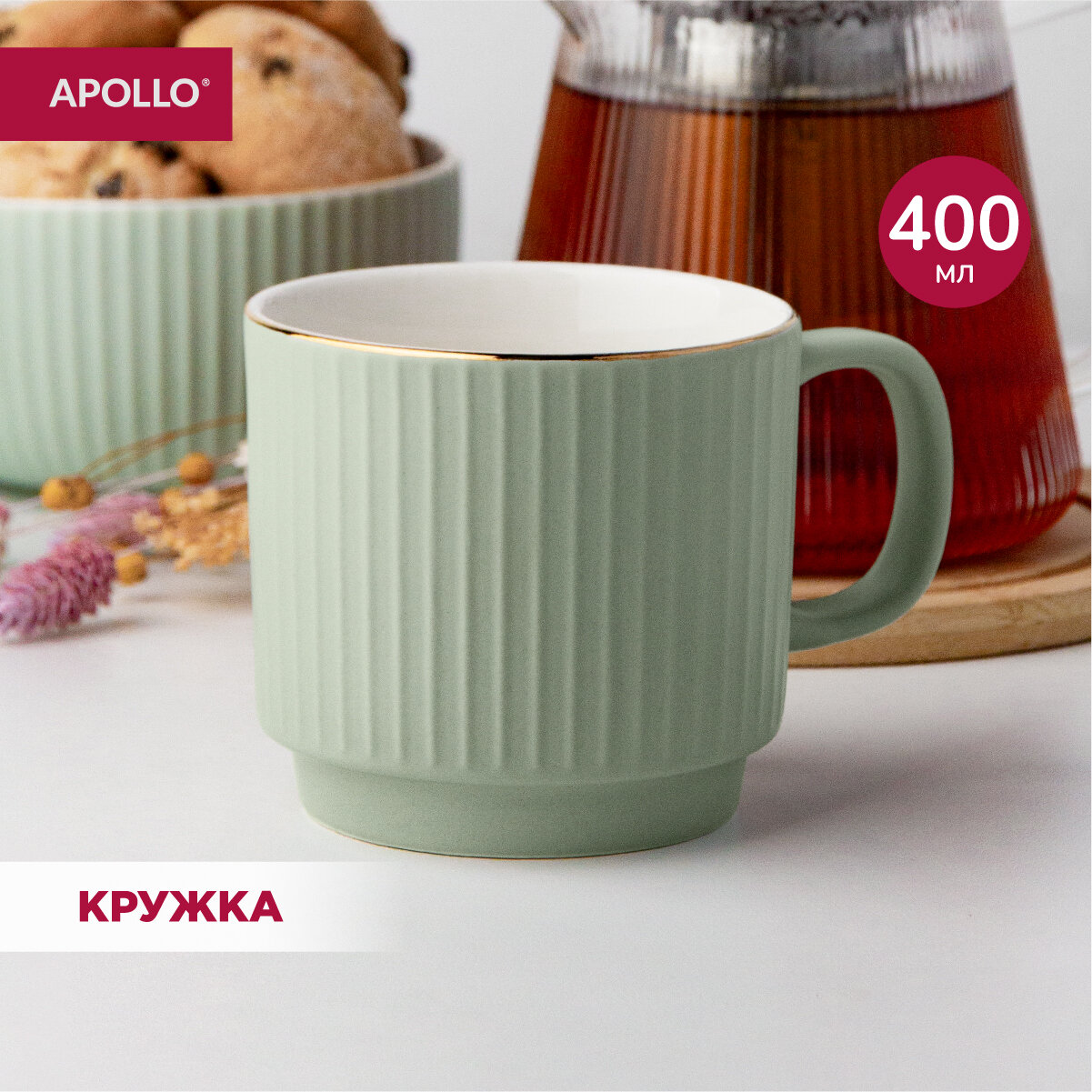 Кружка для чая и кофе, чашка фарфоровая APOLLO "Matt" 400 мл, мятная с золотой окантовкой интересное: