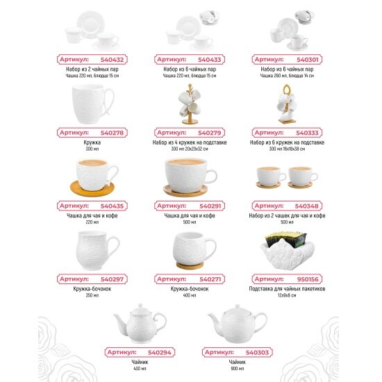 | Комплектация | чашка 6 шт., блюдце 6 шт. |
