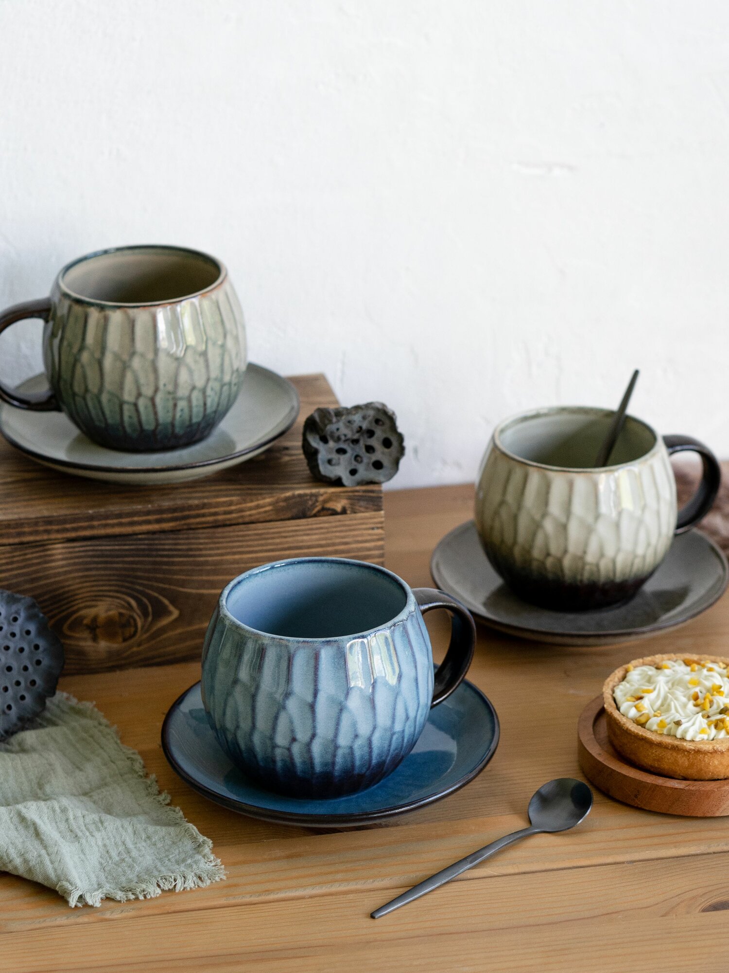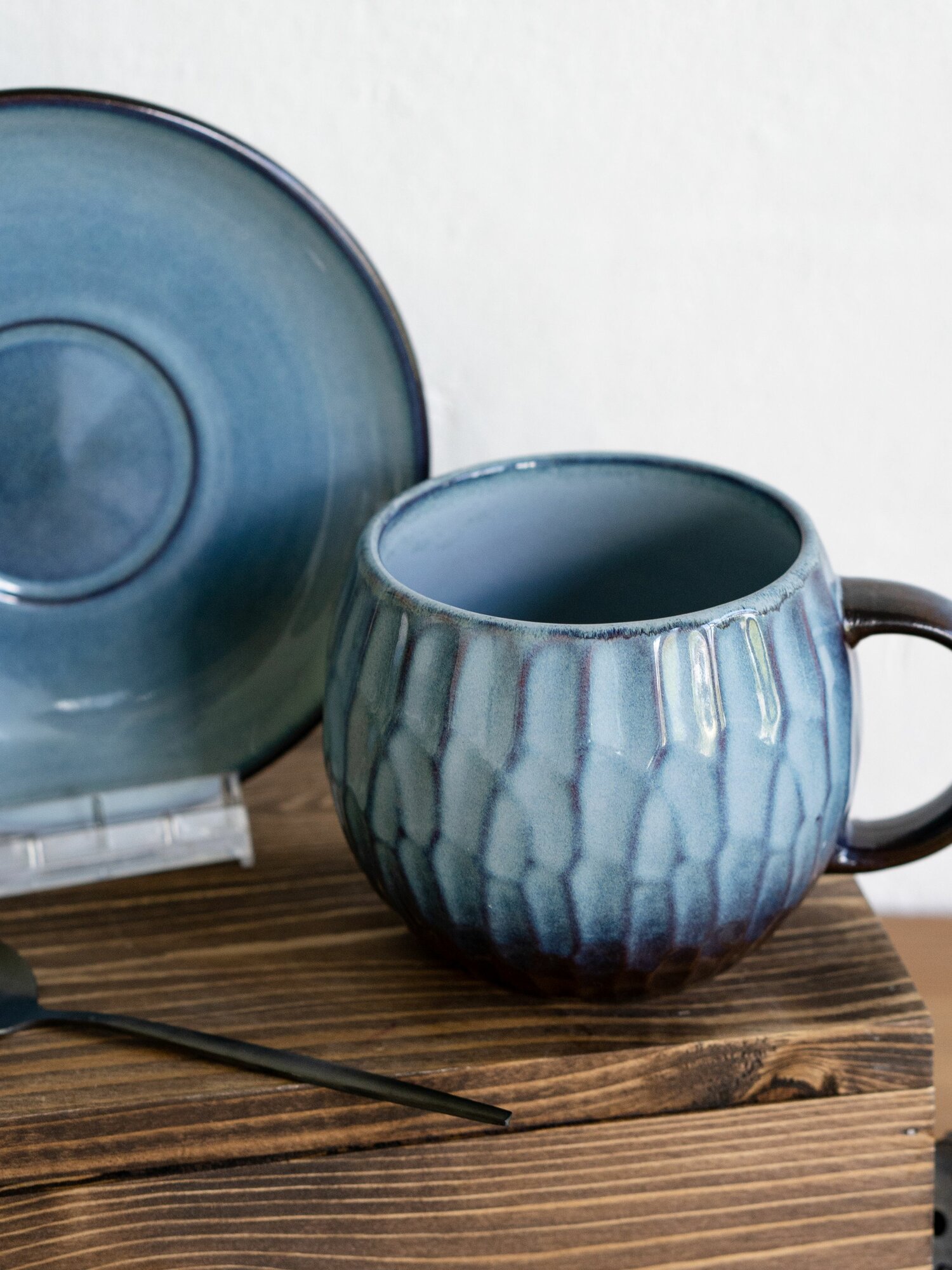 Чайная пара керамика 400мл цвет синий градиент. Чашка с блюдцем набор чайный на одну персону