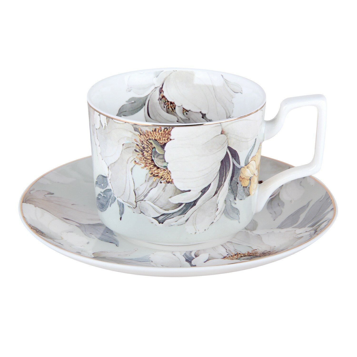 Купить Чайная пара 230мл в подарочной упаковке "Light flower" фарфор. Чайный набор на 1 персону/ Чашка с блюдцем в подарок