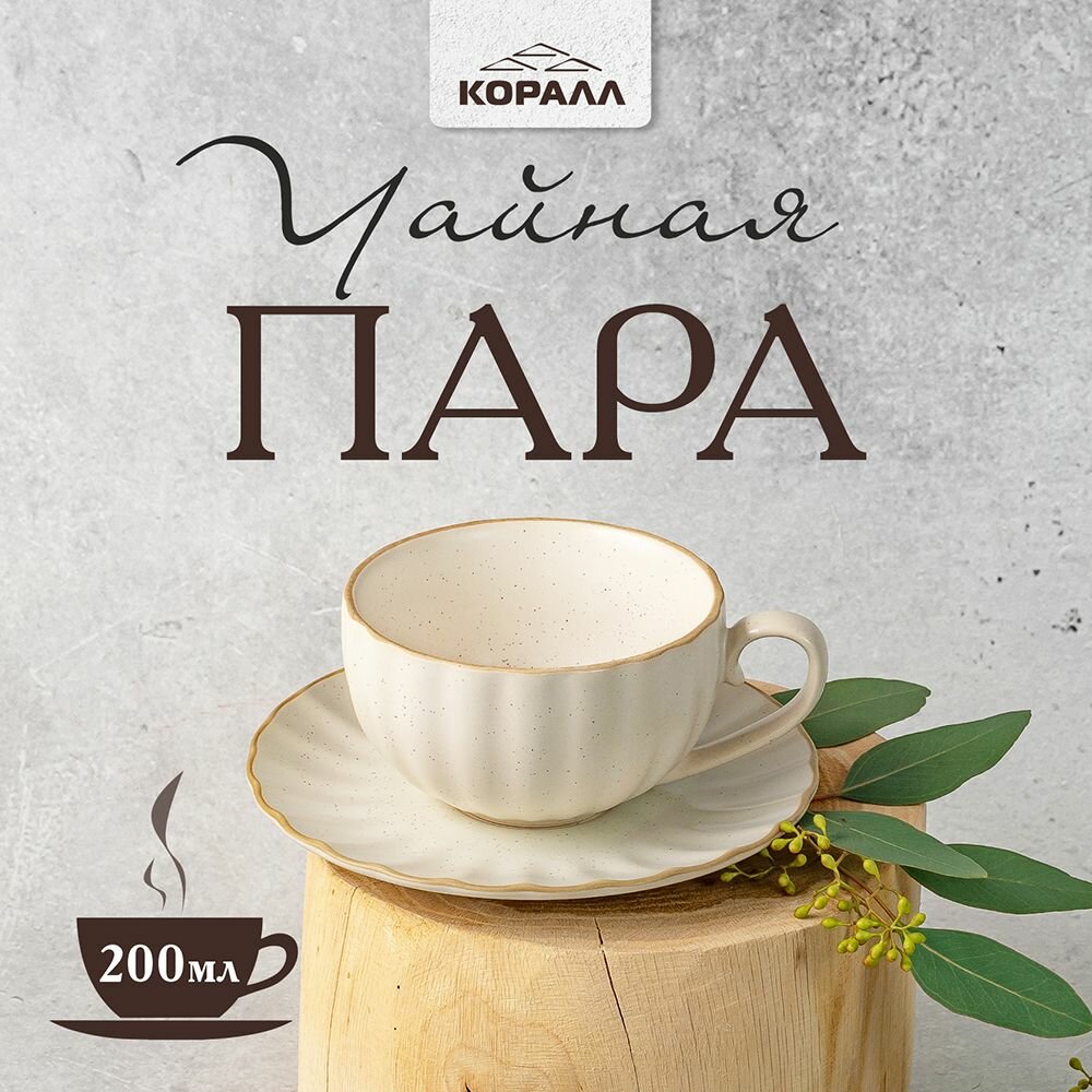 СохранитьЧайная пара подарочная керамика 200 мл Бежевый чашка с блюдцем набор чайный кофейный интересное:
