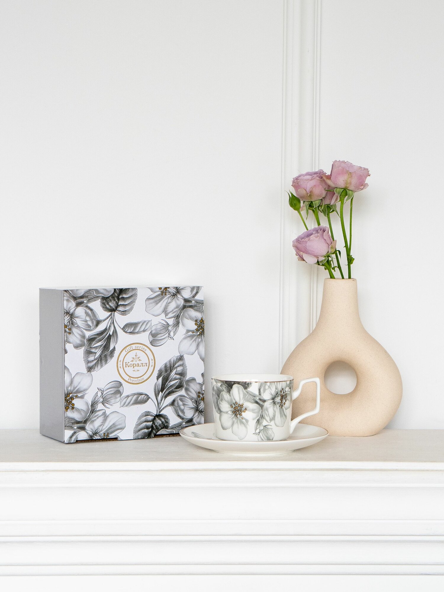 Чайная пара 230мл в подарочной упаковке "Light flower" фарфор. Чайный набор на 1 персону/ Чашка с блюдцем в подарок
