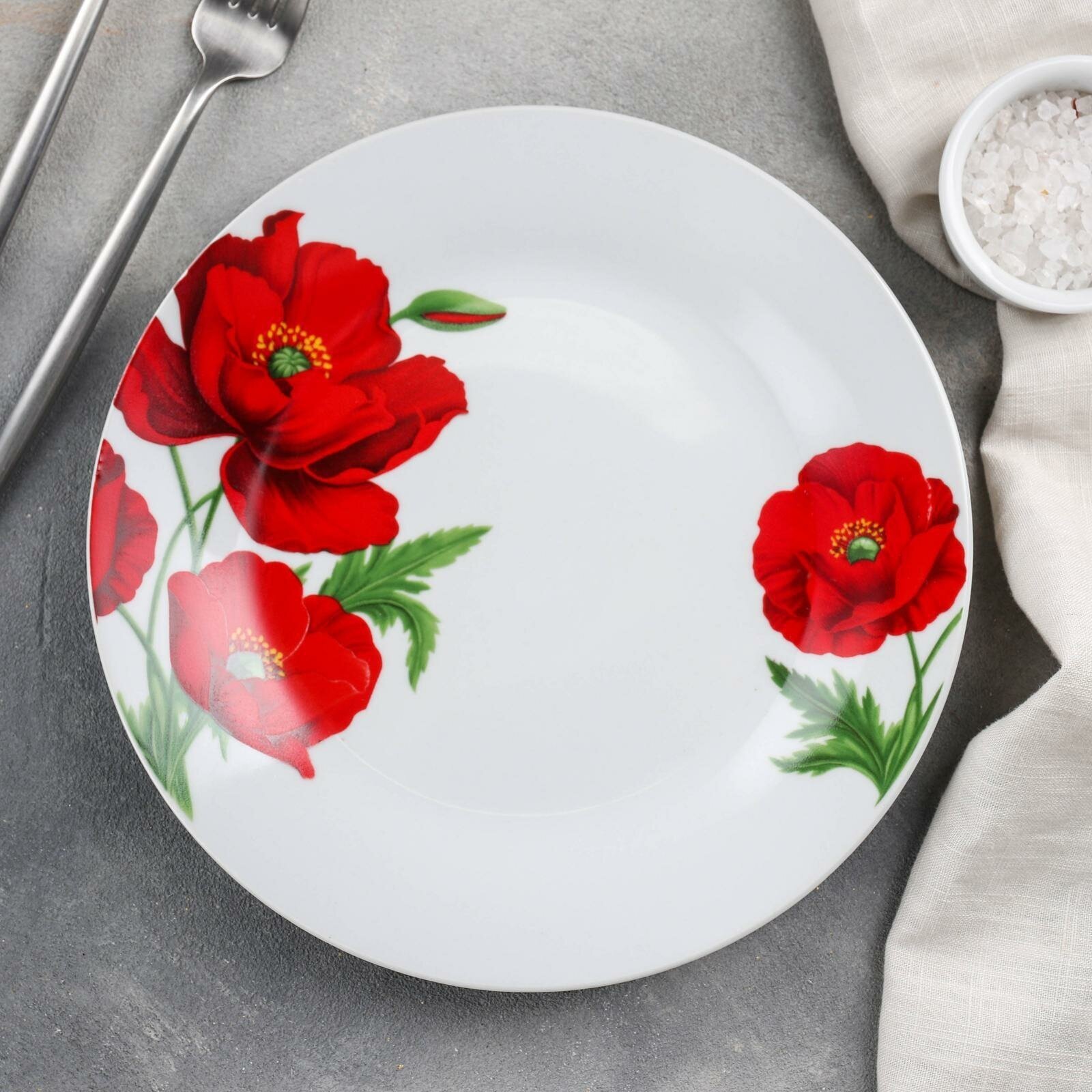 СохранитьТарелка керамическая обеденная «Маки», d=23 см, цвет белый интересное: