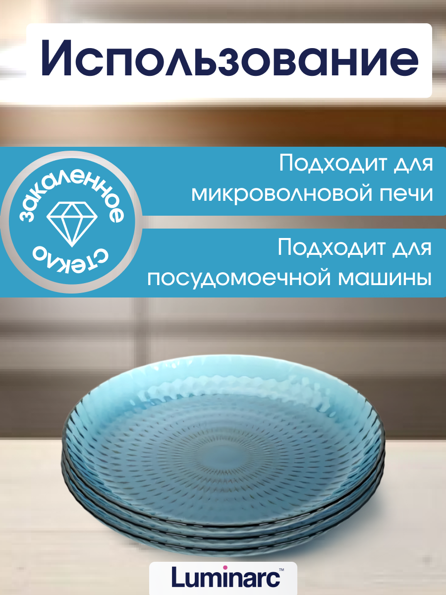 Тарелка Luminarc «Идиллия», стекло, d=19 см, цвет лондон топаз