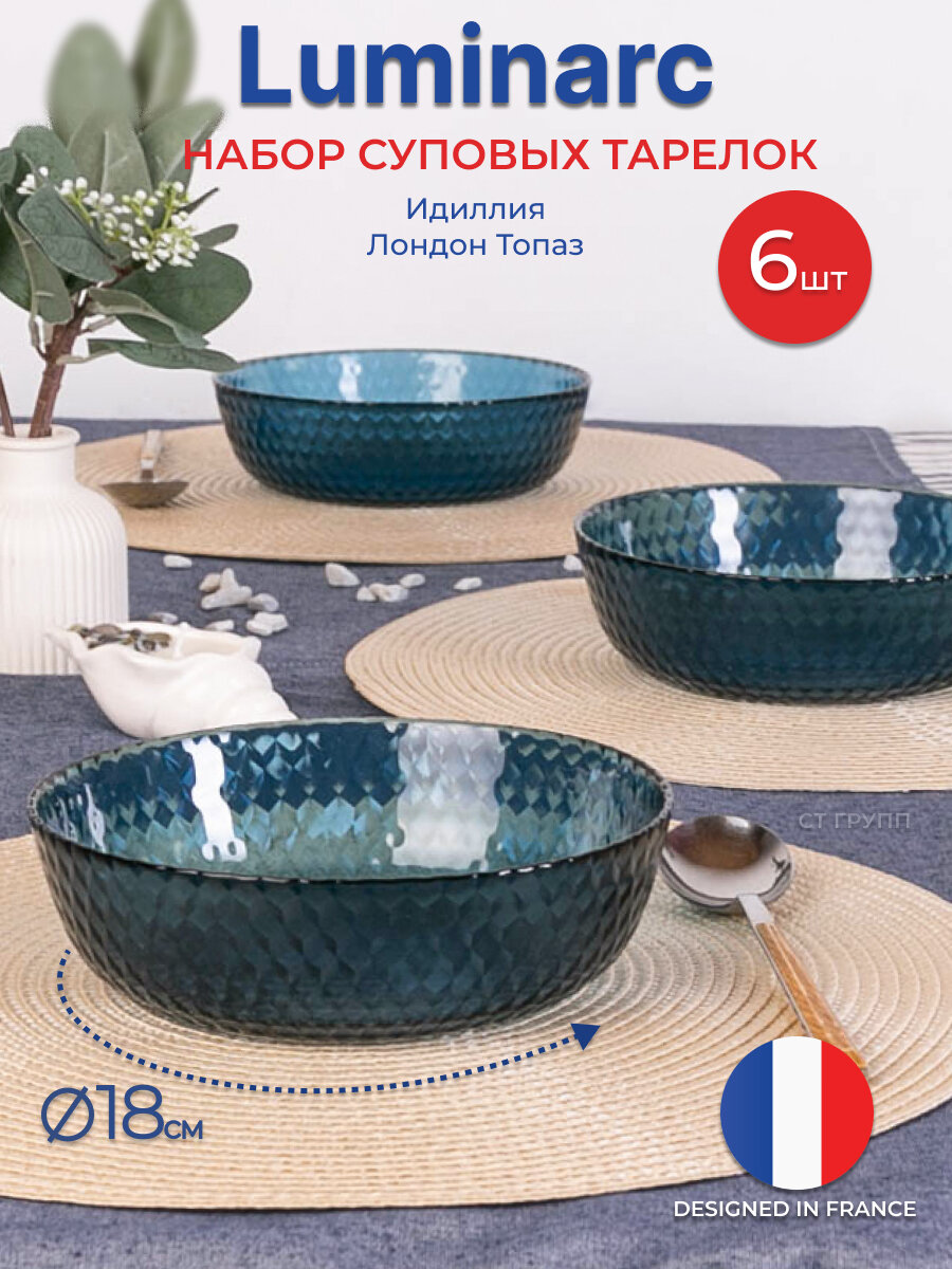 Тарелка суповая Luminarc "Идиллия Лондон топаз" 6 шукт, 18 см