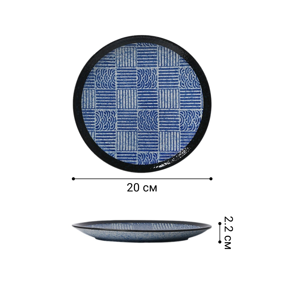 Керамическая тарелка Homium, Japanese Collection в японском стиле, обеденная тарелка с рисунком, голубой, D20см, набор 2шт.