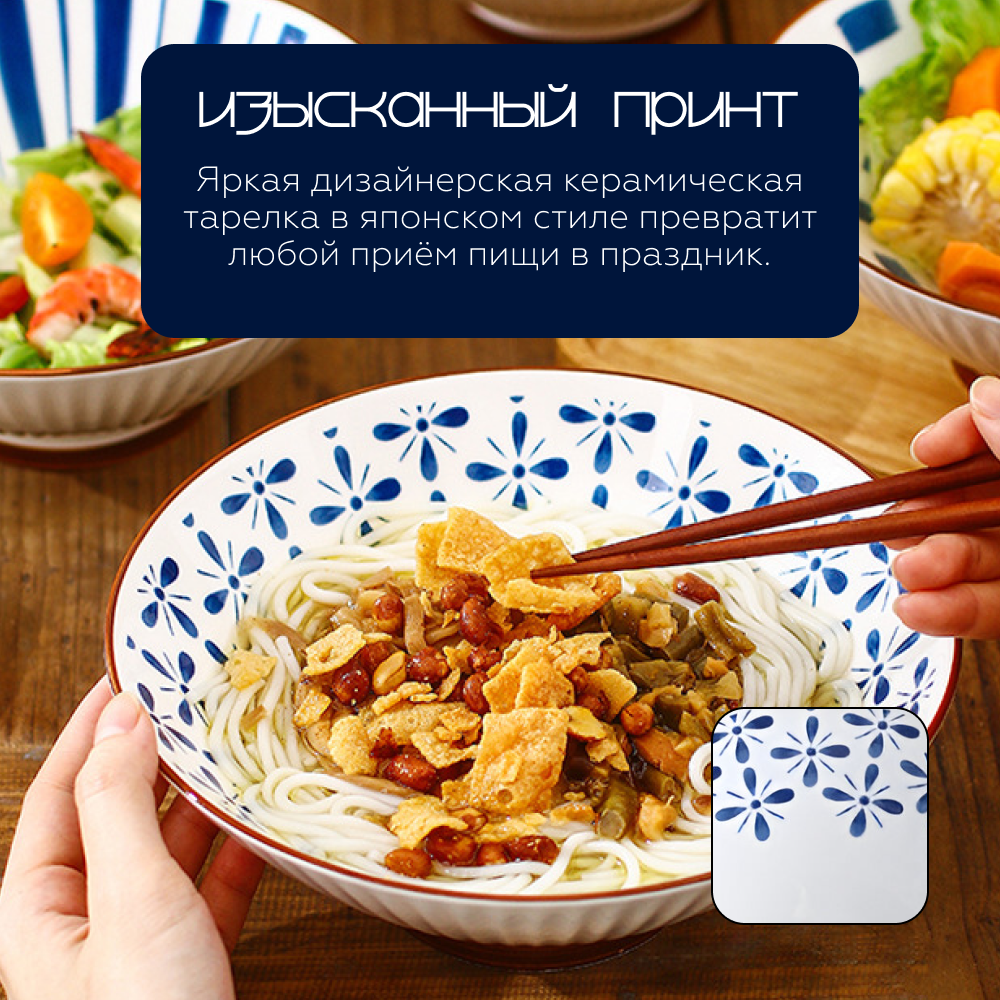 Керамическая тарелка Homium, Japanese Collection в японском стиле, обеденная тарелка с рисунком, голубой, D20см, набор 2шт.