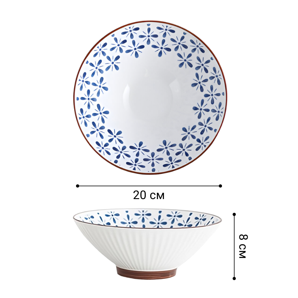 Тарелка глубокая пиала для салата и супа Homium, Japanese Collection, Очарование, керамическая, цвет белый/синий, D20см