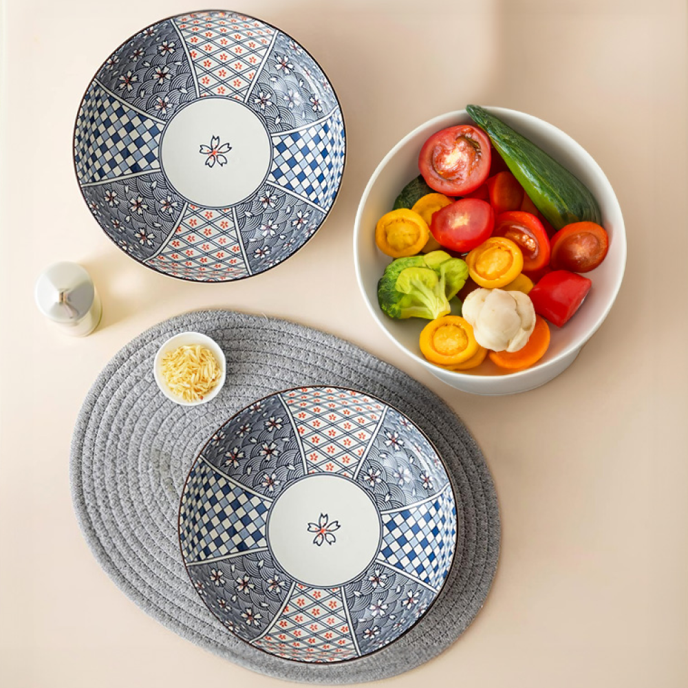Керамическая тарелка Homium, Japanese Collection в японском стиле, обеденная тарелка с рисунком, голубой, D20см, набор 2шт.