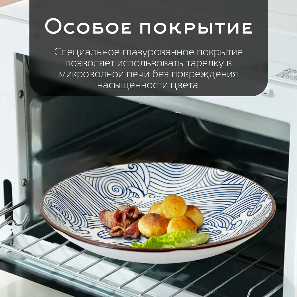 Керамическая тарелка Homium, Japanese Collection в японском стиле, обеденная тарелка с рисунком, голубой, D20см, набор 2шт.