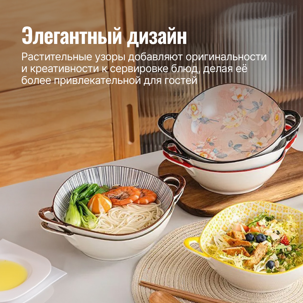 СохранитьНабор больших суповых тарелок из керамики, столовая посуда для сервировки стола с ручками, 19 см, 2шт. интересное: