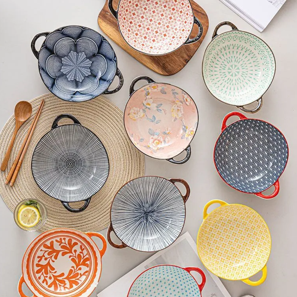 Купить Набор больших суповых тарелок из керамики, столовая посуда для сервировки стола с ручками, 19 см, 2шт.