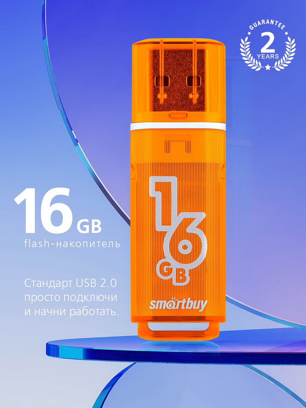 Флеш-карта SmartBuy 16 гб, Glossy, USB 2,0, оранжевая (SB16GBGS-Or)