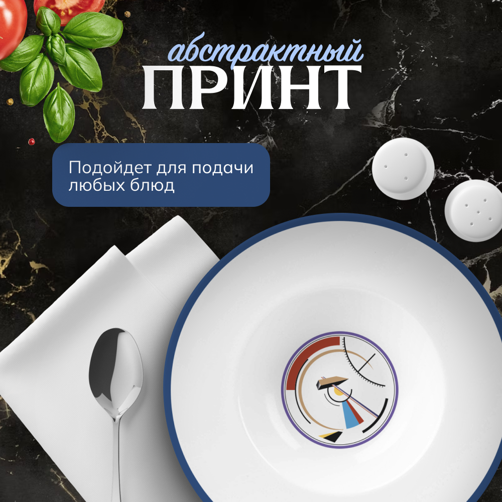 Тарелка керамическая Homium, в стиле русский авангард глубокая, 1 шт, белый, D28 см