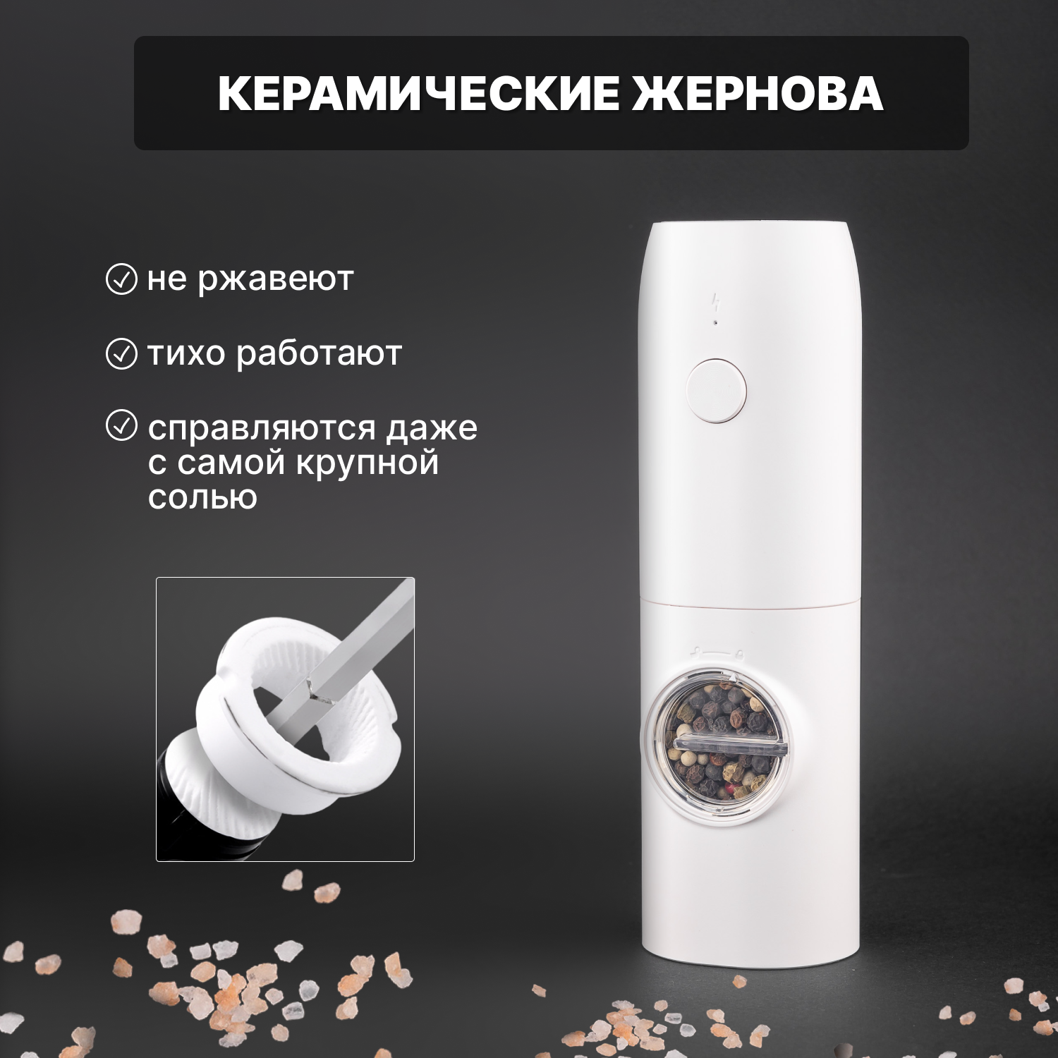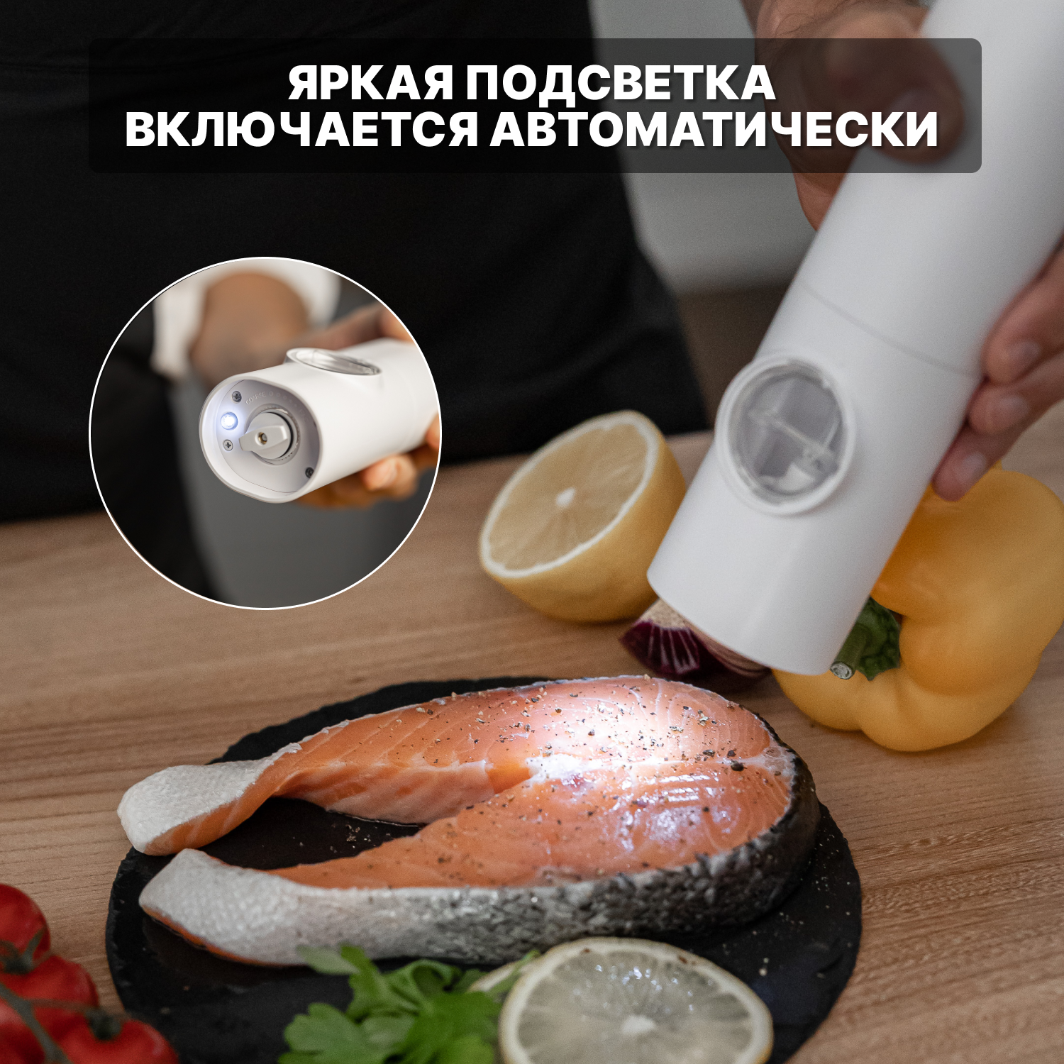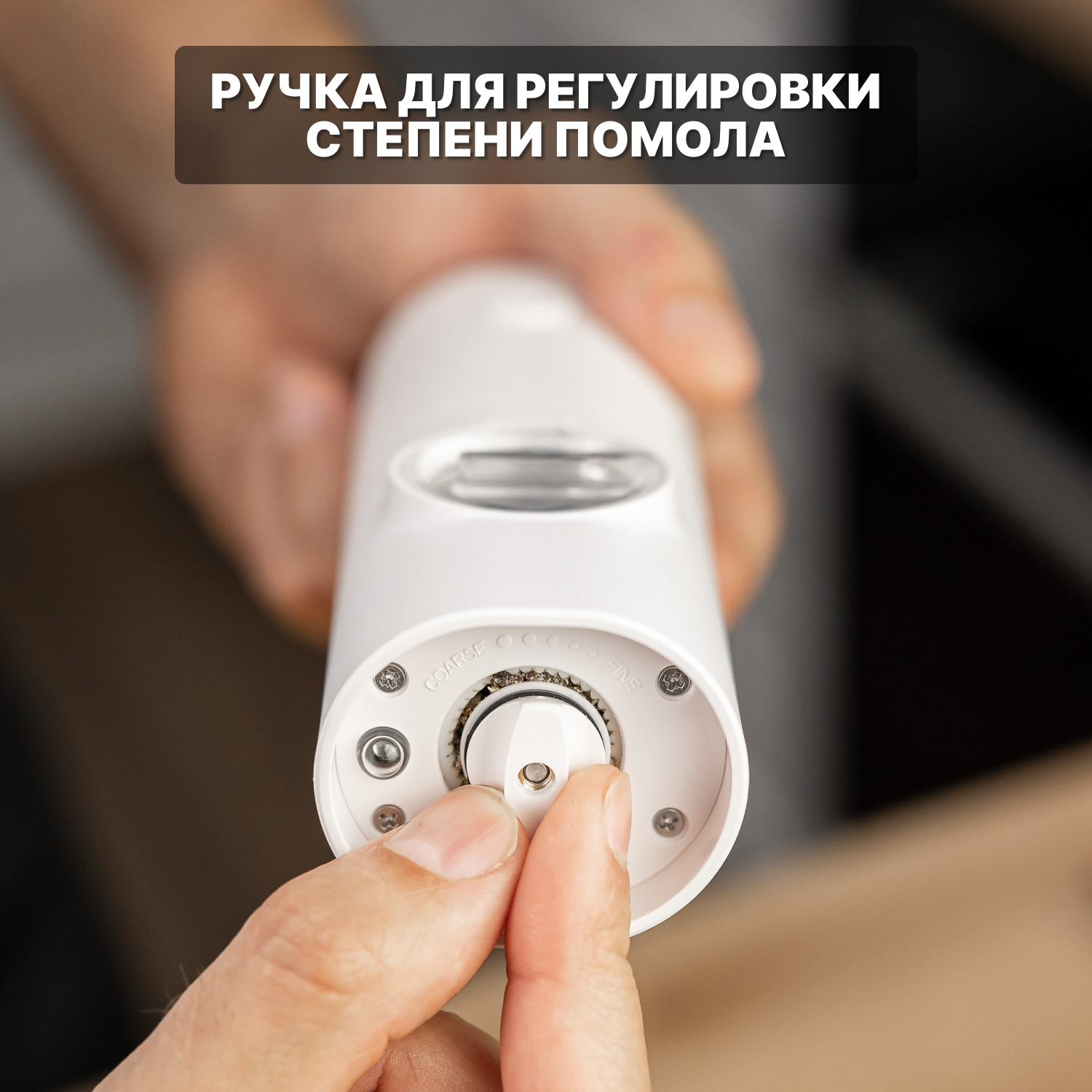 Мельницы для специй электрические белые с подсветкой, плавной регулировкой помола и аккумулятором набор из 2 штук интересное: