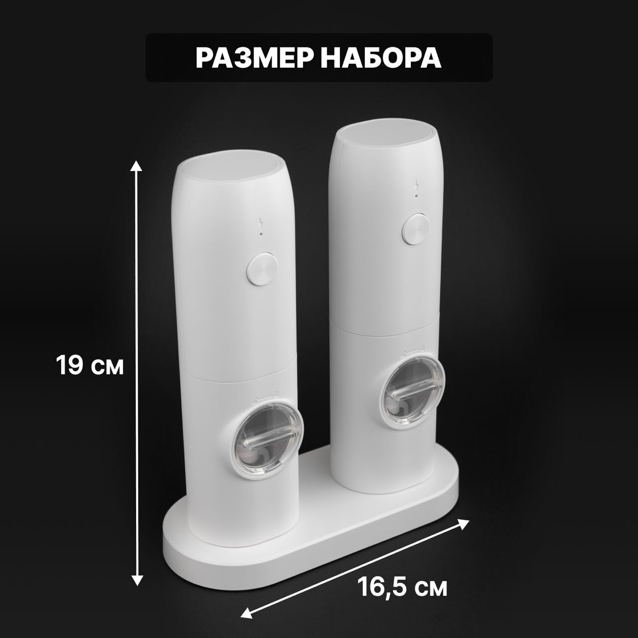 Купить Мельницы для специй электрические белые с подсветкой, плавной регулировкой помола и аккумулятором набор из 2 штук
