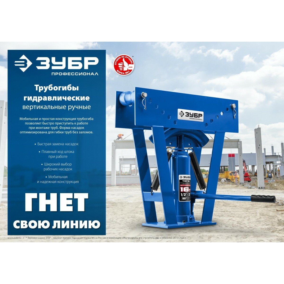 Трубогиб гидравлический ЗУБР ТВГ-8 1/2-1" вертикальный ручной, 8т интересное: