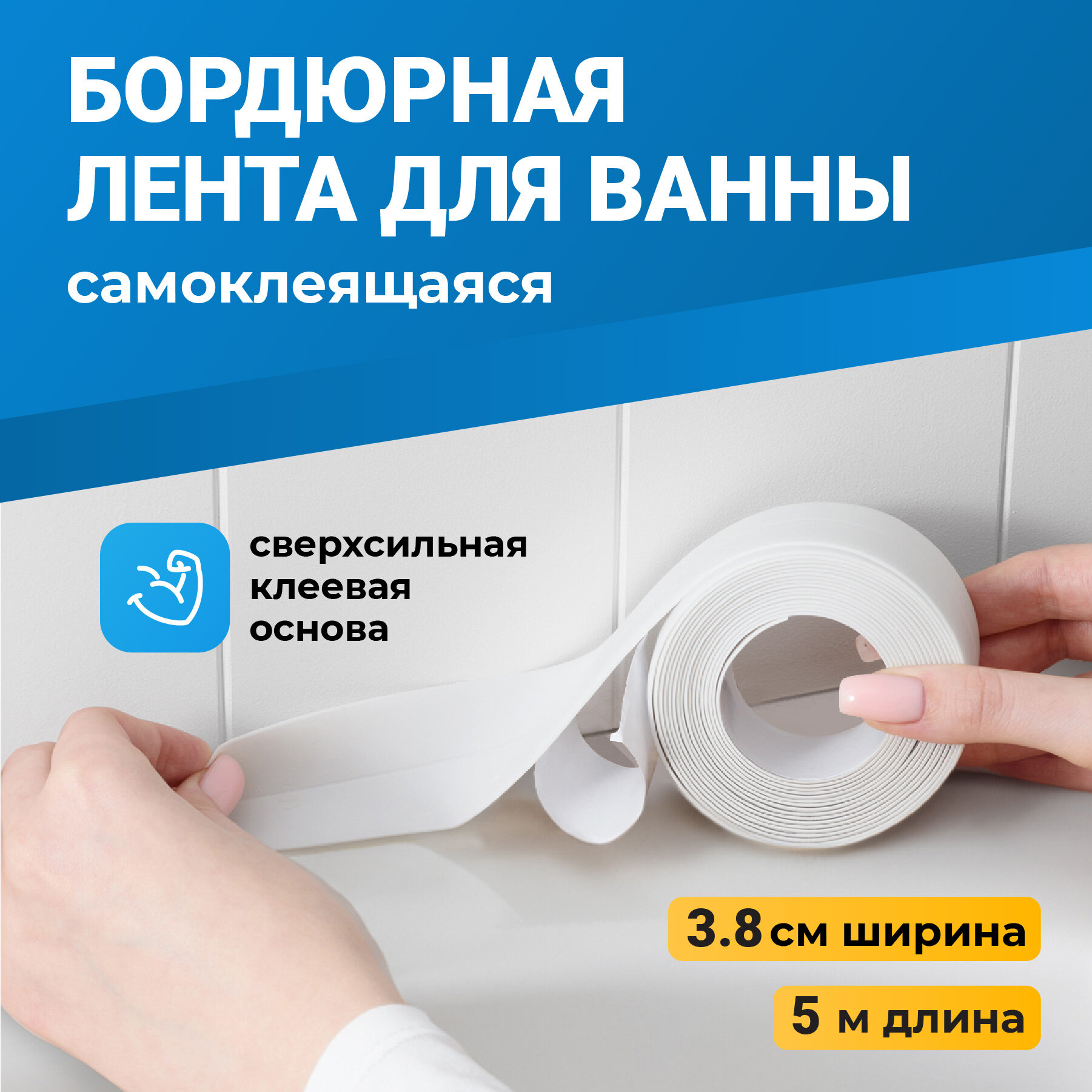Лента-бордюр для ванны 20ммх3,35м белая
