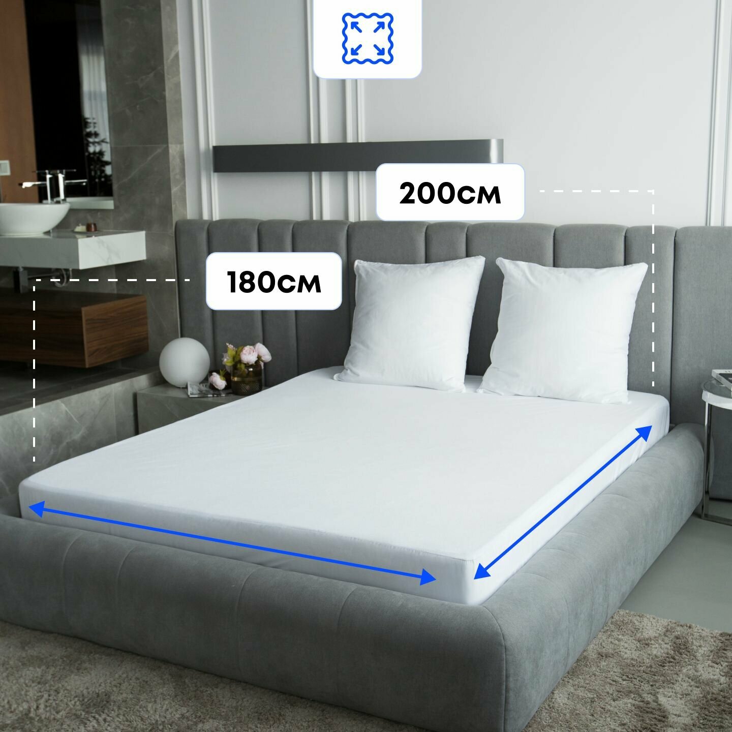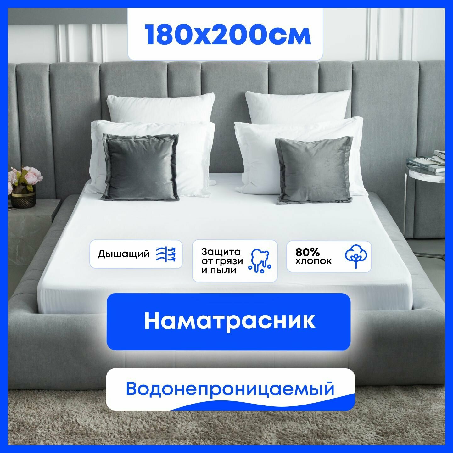 Наматрасник 180х200 непромокаемый, резинка по периметру, борт до 25 см, Famille Fabrique, защитный, водонепроницаемый, чехол на матрас, топпер на матрас или диван