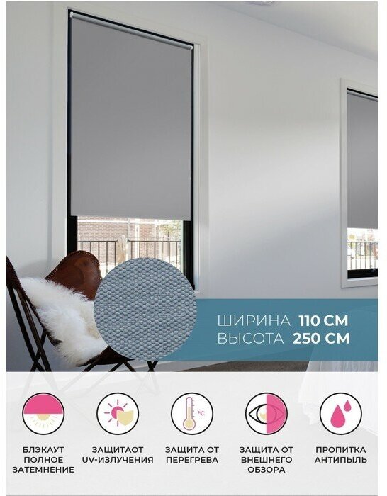 СохранитьРулонные шторы BLACKOUT / блэкаут 110 см x 250 см Серый Плайн DECOFEST (Стандарт) интересное: