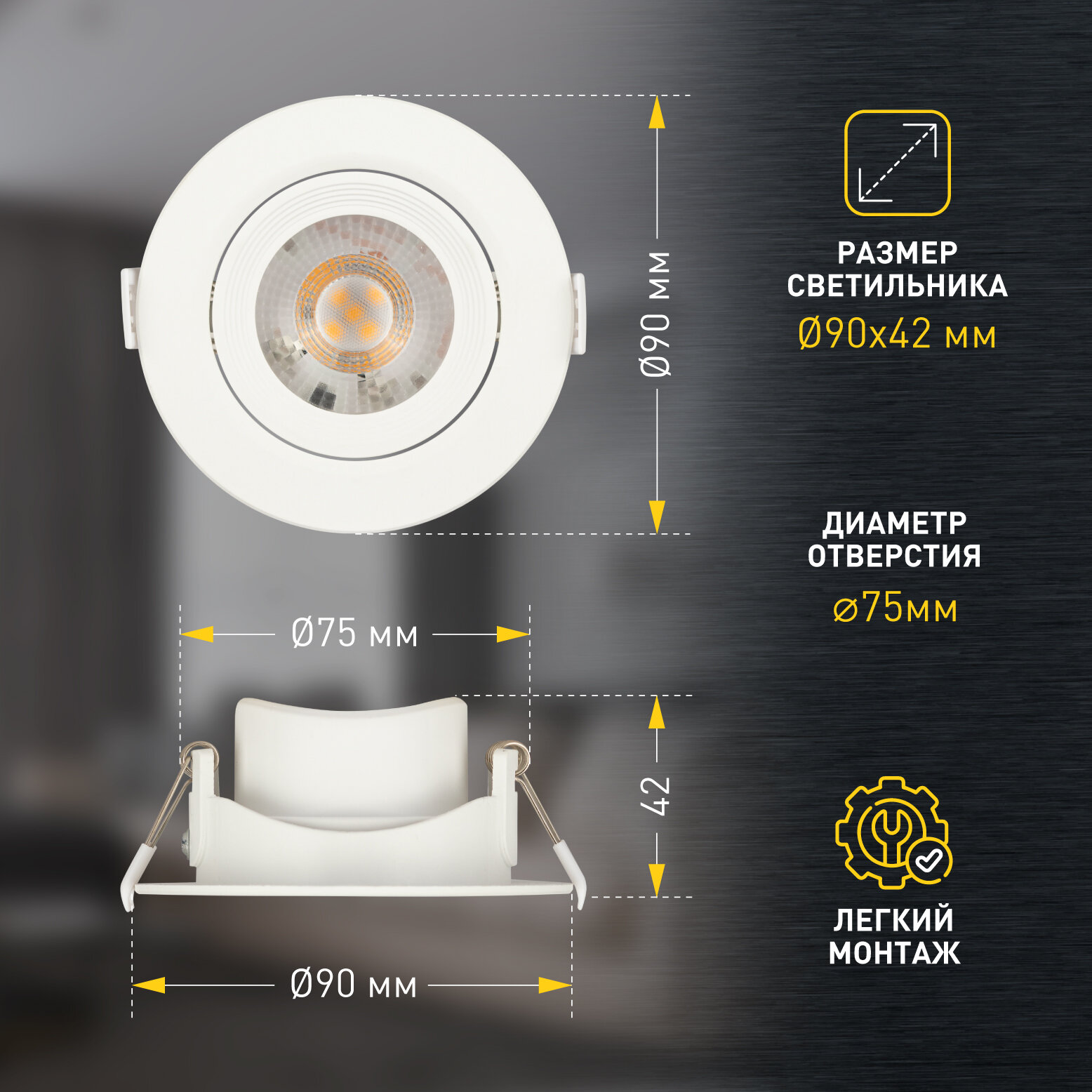Точечный светильник встраиваемый светодиодный ЭРА (LED) круглый поворотный 5Вт 3000К 325Лм, Б0037036, белый (комплект 4 шт)