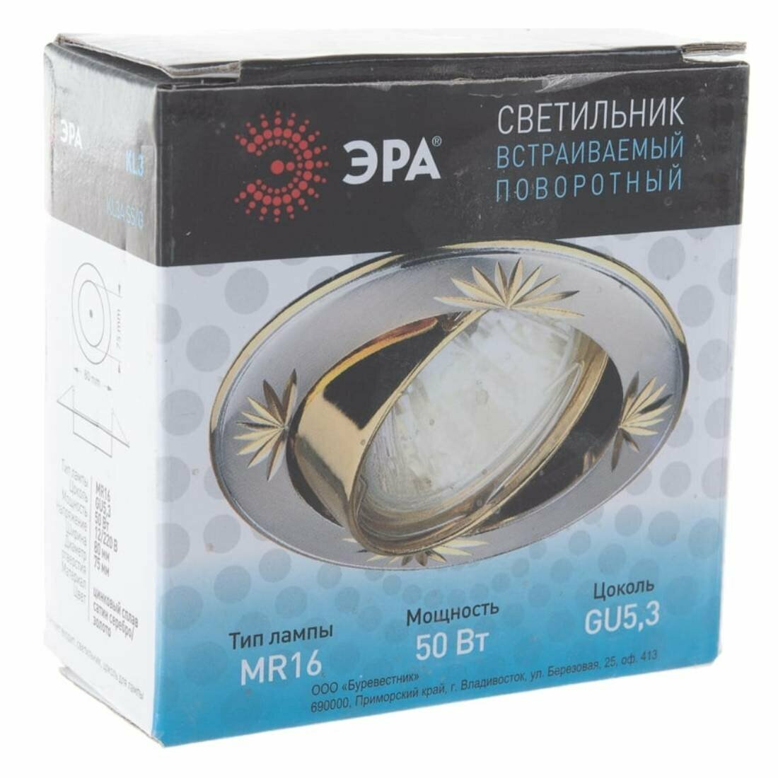 ЭРА KL3A SS/G Светильник литой круг. пов. с гравир MR16,12V/220V, 50W сатин серебро/золото C0043663