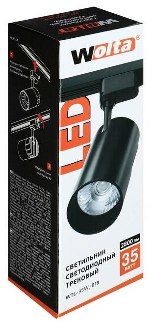 | Подробная комплектация | Трековый светильник светодиодный Wolta WTL-35W/01B 35 Вт, 14 м², цвет черный, |