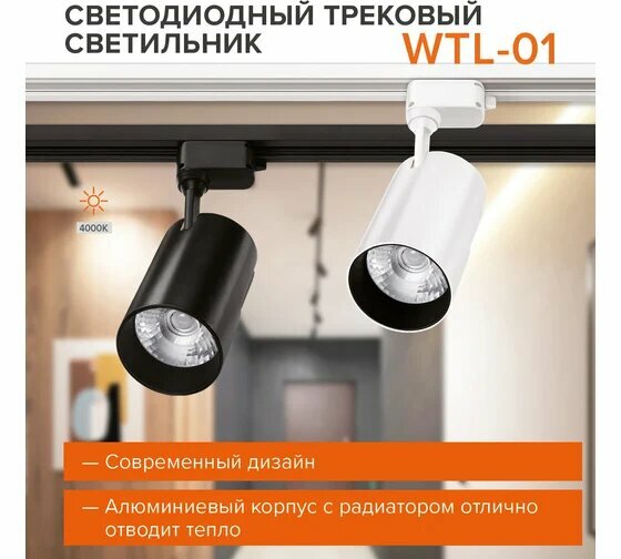 Светильник светодиодный трековый на шинопровод Wolta 35W(2800lm) 4000K 4K черный WTL-35W/01B интересное: