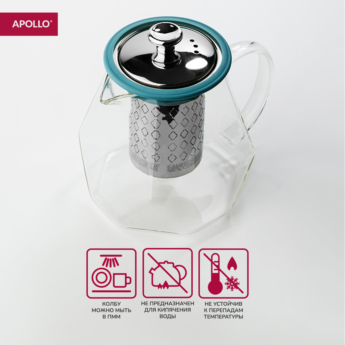 Чайник заварочный стеклянный с металлическим ситом APOLLO genio "Grape-Shape" объём 820 мл