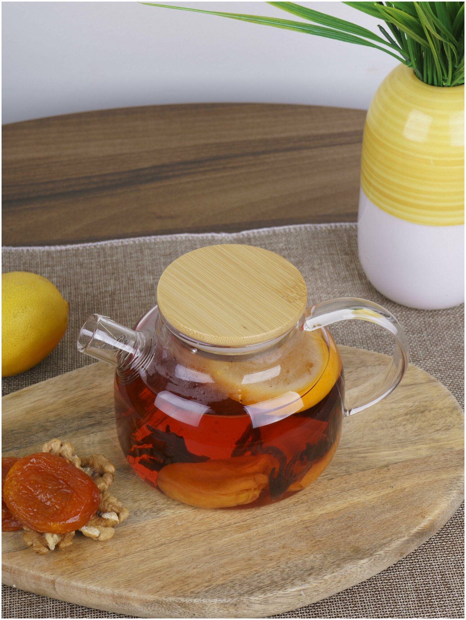 Купить Чайник GLASS, заварочный, 1 л, термоизолированный, с бамбуковой крышкой