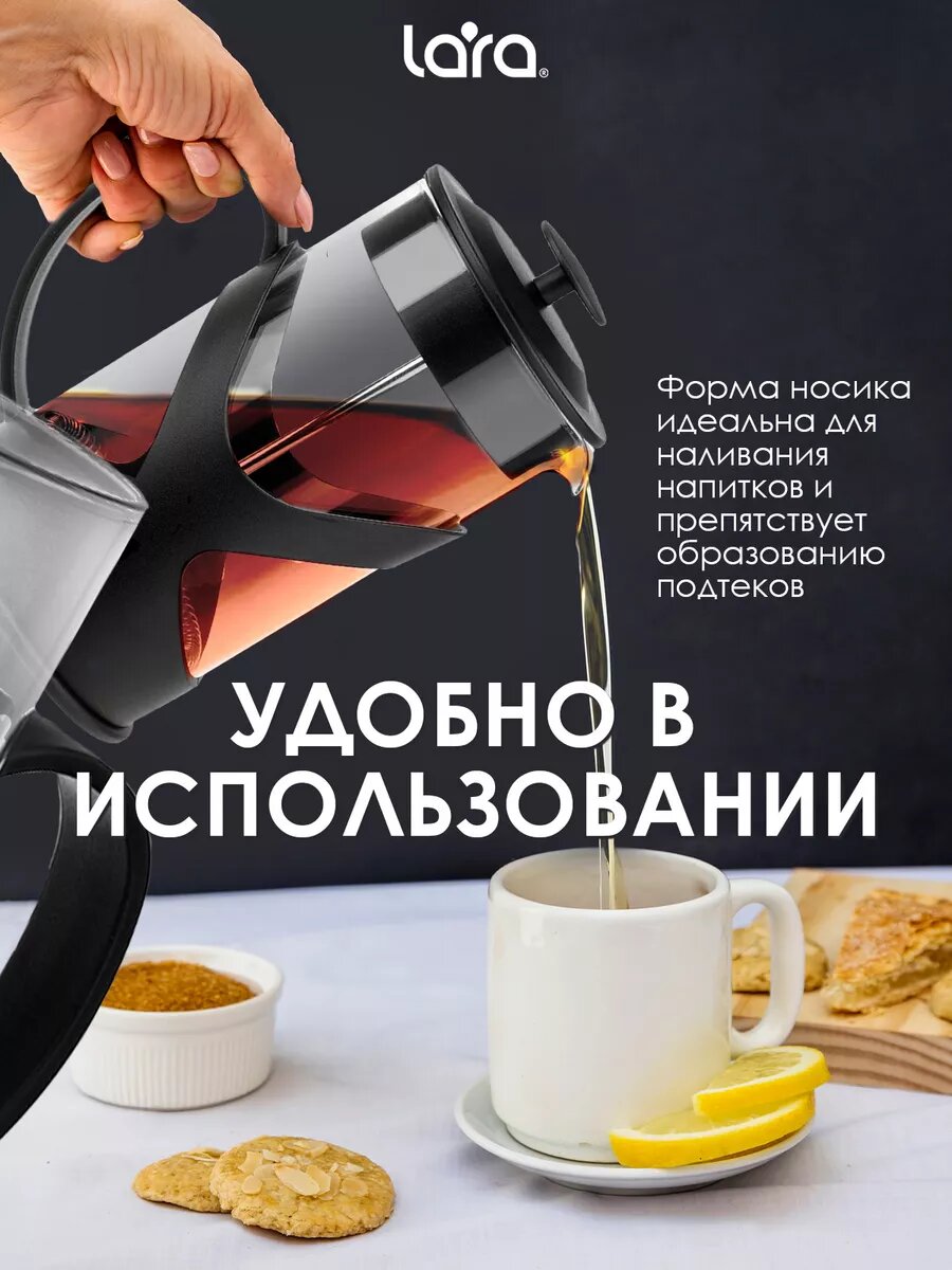 Френч-пресс LARA LR 06-50-1000 (1 л),1 литр, 1000 мл, заварочный чайник для чая, кофе, чайник, кофейник, кухонная утварь