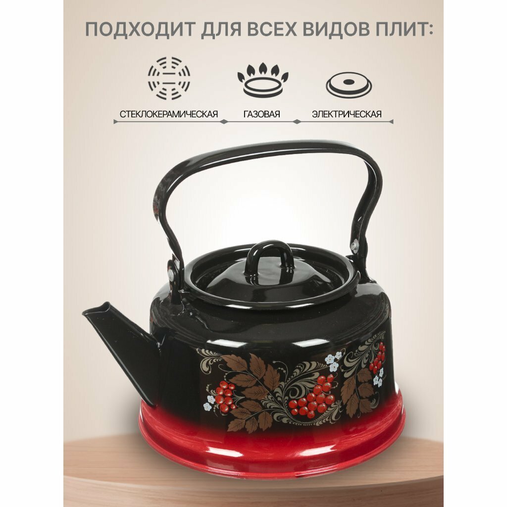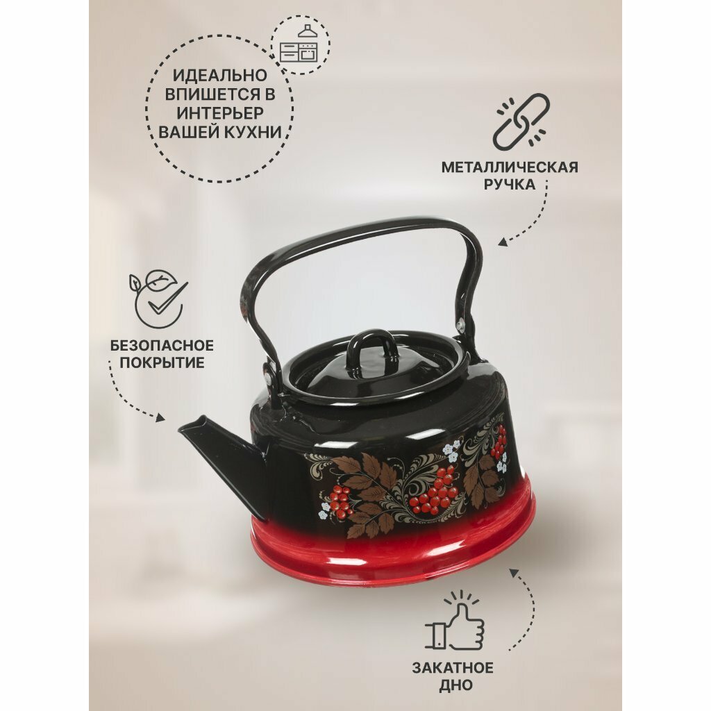 Чайник сталь, эмалированное покрытие, 3.5 л, закатное дно, ручка металлическая, Сибирские товары, красно-черный, С2713.8 интересное:
