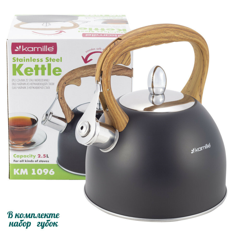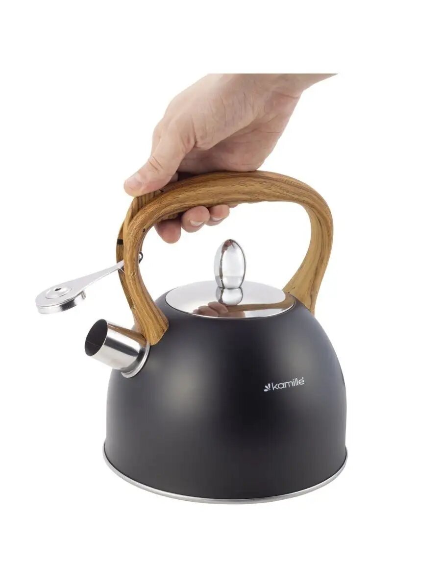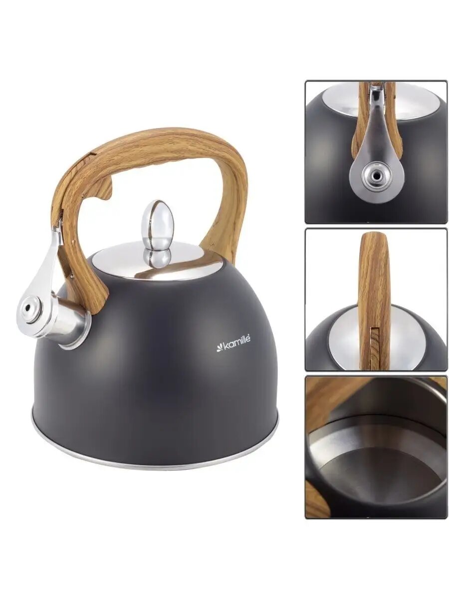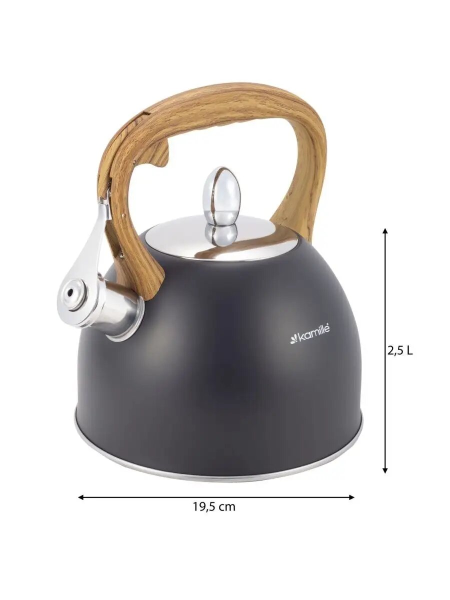Чайник 2,5л из нержавеющей стали со свистком и ручкой soft touch Kamille.