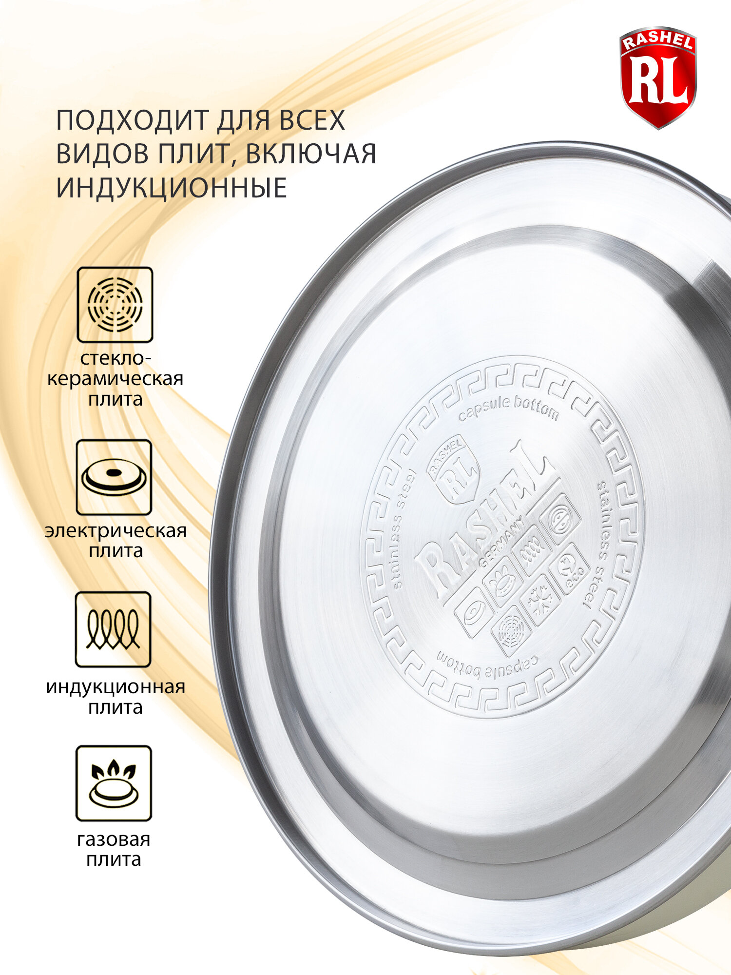 Чайник из нержавеющей стали со свистком Rashel 3 литра для газовой, электрической и индукционной плиты