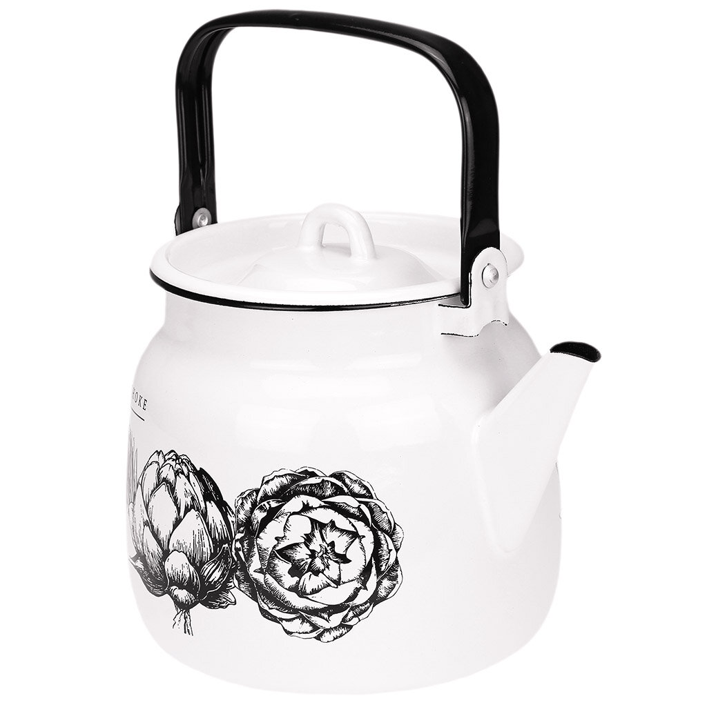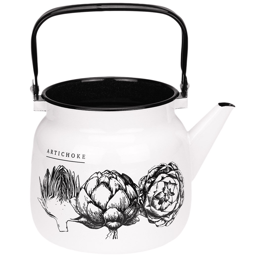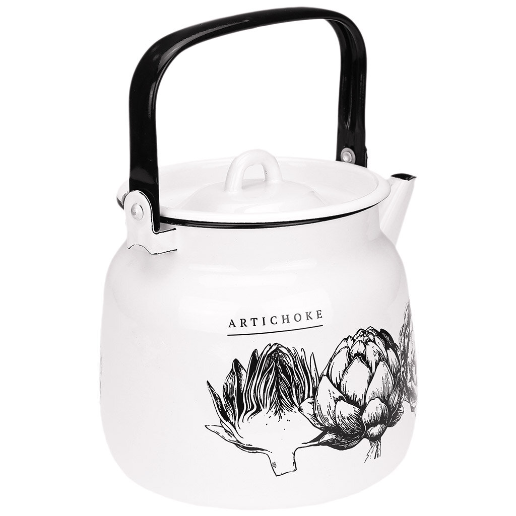 Купить Чайник для плиты Лысьвенские эмали Artichoke С-2713/4Рч с подвижной ручкой из эмалированной стали белый 3.5л / для кипячения воды / кухонная посуда для всех видов плит