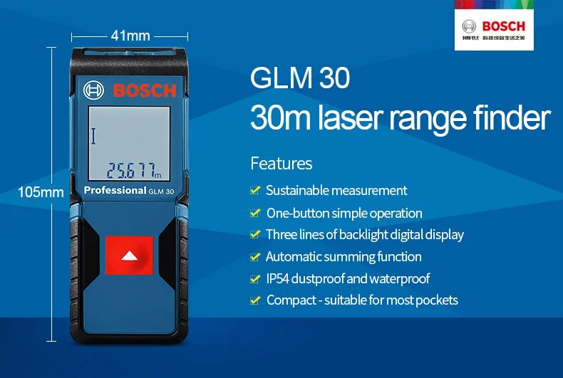 Ниже Вы можете прочитать отзывы на Профессиональный лазерный дальномер Bosch, 30/40/50 метров, Электрический измеритель расстояния, внешний измерительный прибор, GLM40, ознакомится с подробными характеристиками, посмотреть интересные обзоры и фотографии на Профессиональный лазерный дальномер Bosch, 30/40/50 метров, Электрический измеритель расстояния, внешний измерительный прибор, GLM40.
